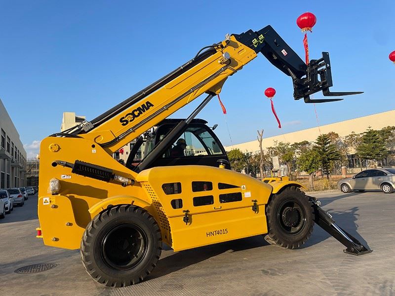 Le chariot télescopique SOCMA HNT4015-4 est conçu pour les sites nécessitant une hauteur de levage accrue. Doté d’une capacité de levage de 4 tonnes jusqu’à des hauteurs de 15 m, vous pouvez enlever des charges en toute sécurité grâce aux larges stabilisateurs qui vous offrent une excellente stabilité latérale et avant. Il peut également gérer tous les types de terrain avec ses capacités de 4 roues motrices et de direction et sa garde au sol généreuse. Conçu avec des points d’élingage facilement accessibles, le déplacement du SOCMA HNT4015-4 d’un site à l’autre est un jeu d’enfant. La qualité des composants utilisés et la porte en acier à cadre bas assurent une durabilité durable, tandis que le grand capot moteur facilite l’entretien.